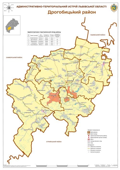 | Дрогобицька | Міська | м. Дрогобич | 426,2 | 97 946 | 282,5 | 34 |